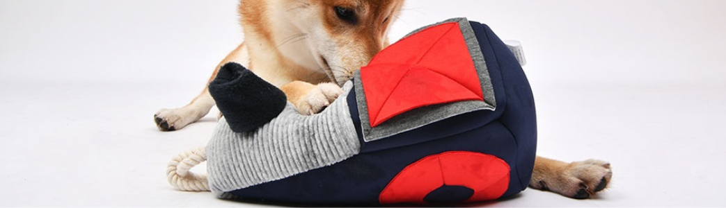 Retrouvez toute une gamme de jouets peluches et de tapis de fouille pour y cacher des friandises, des croquettes ou des objets. Idéal pour faire travailler le flair, et développer les stratégies de votre chien, ainsi que de la dépense mentale.