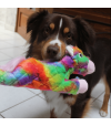Sa matière douce permet au chien de la prendre en gueule sans se blesser, tandis que son couineur stimule l’instinct de jeu de manière modérée. La taille généreuse de la peluche la rend parfaite pour les chiens qui aiment transporter leurs jouets, les secouer ou simplement dormir avec.